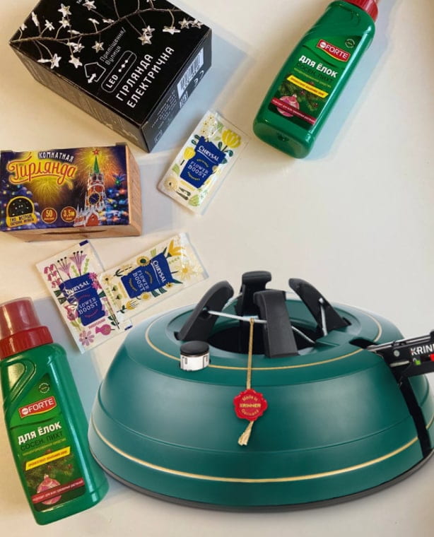Установка елки, как и сама подставка не входят в стоимость. Оплачиваются отдельно и зависит от высоты дерева. Также мы всегда советуем добавить к заказу средство по уходу за елкой, если использовать удобрение, то деревце простоит дома дольше.